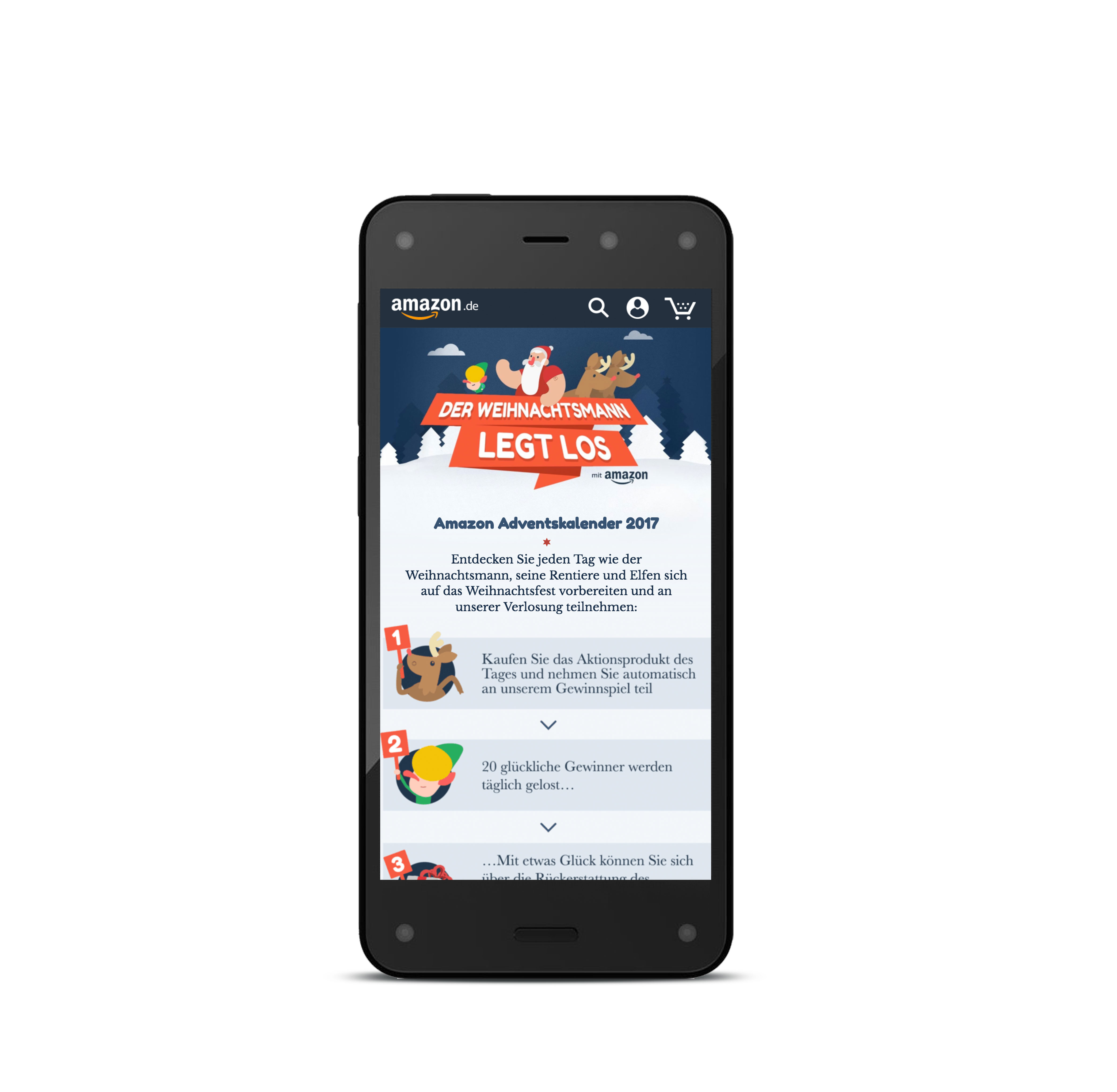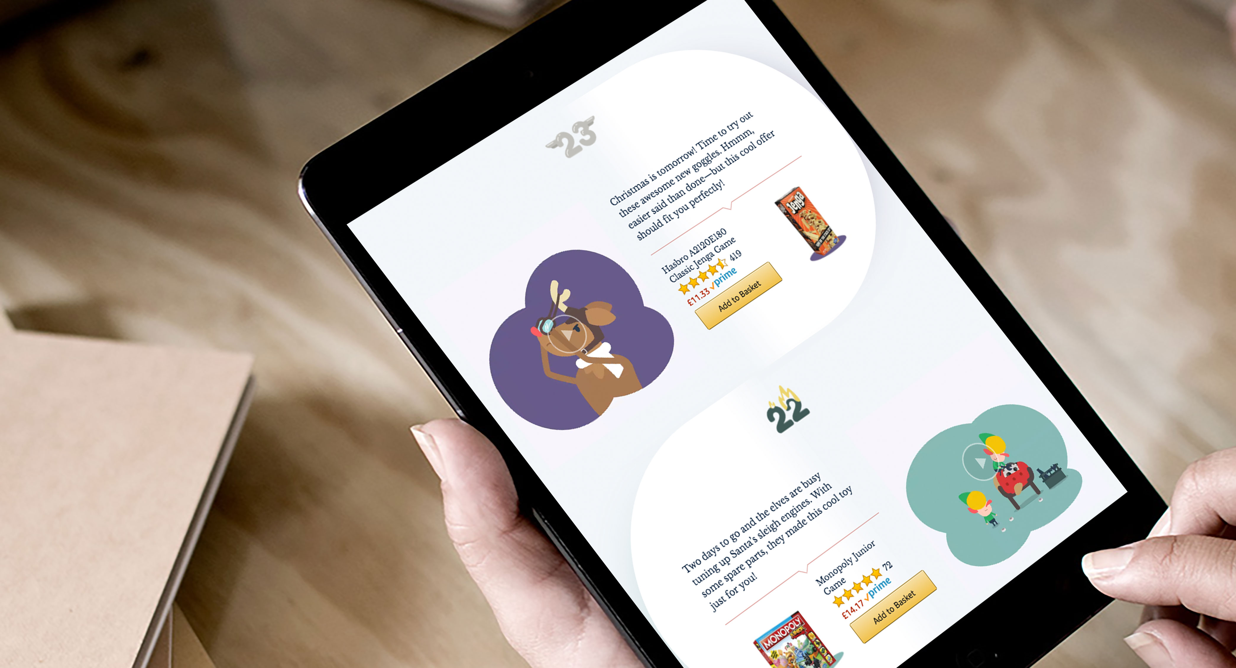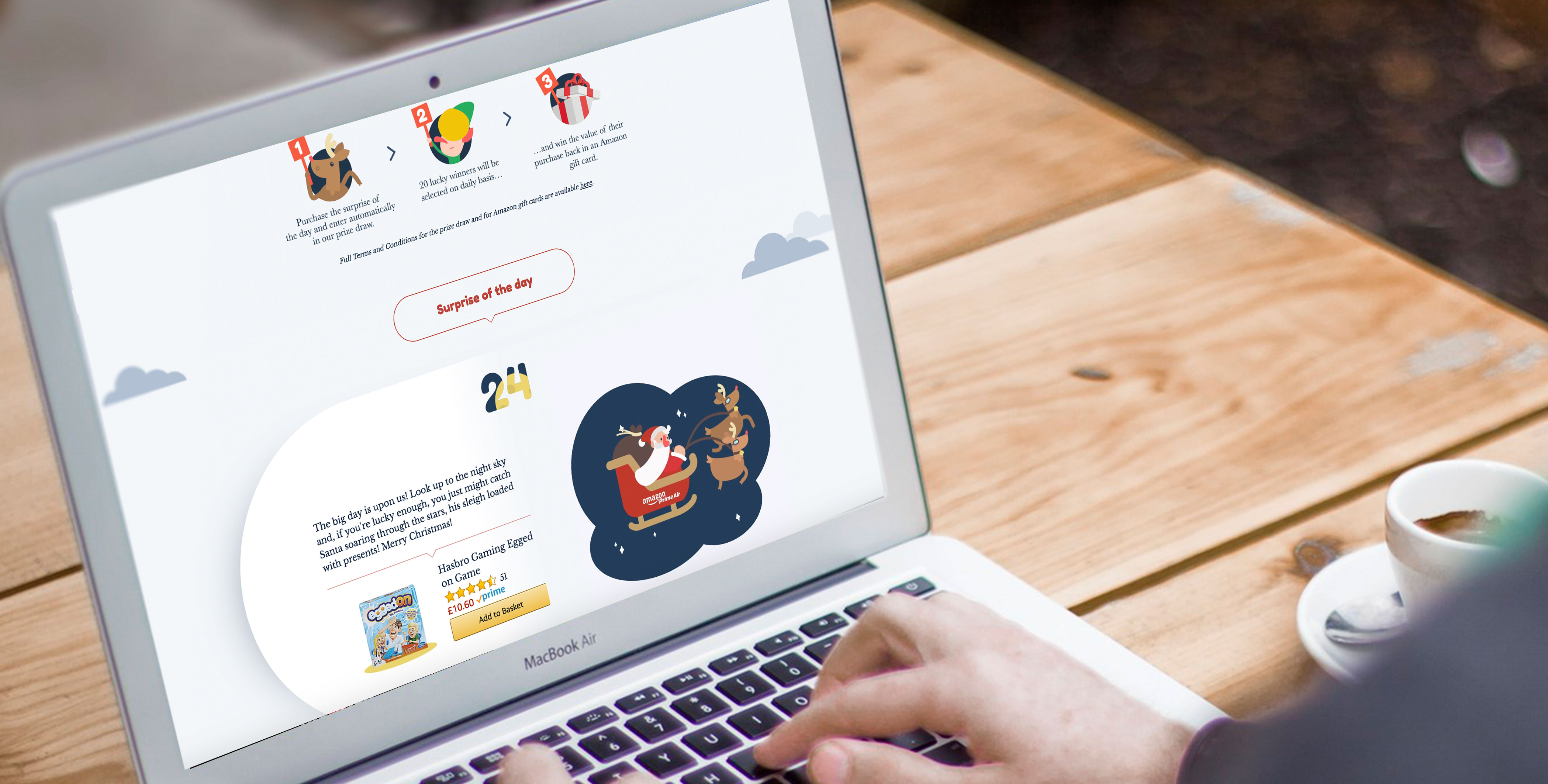 Customers were invited to follow Santa’s journey on a never done before advent calendar. Each day, a new product and story were added to the landing page. By purchasing the surprise of the day, customers were entered into a prize draw to win Amazon promotional credit to the value of their purchase.